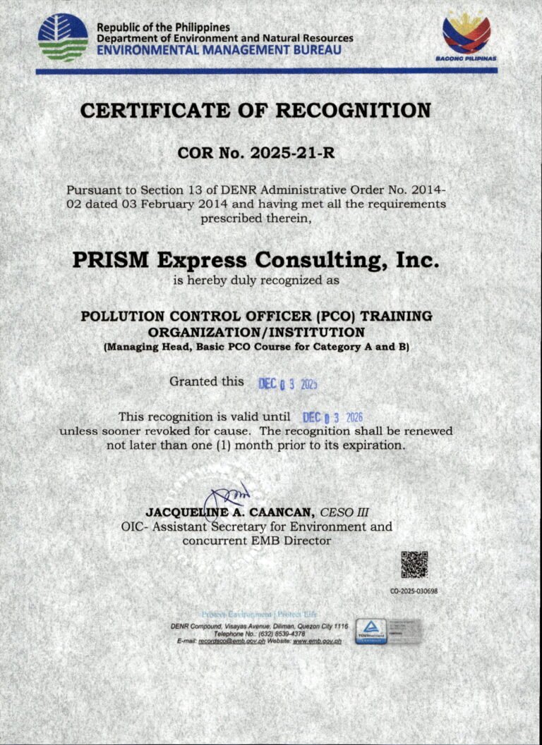 EMB-RECOGNIZED PCO TRAINING ORGANIZATION